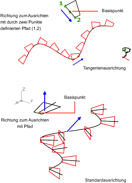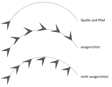 Gibt an, wie die angeordneten Elemente relativ zur Startrichtung des Pfads ausgerichtet werden.