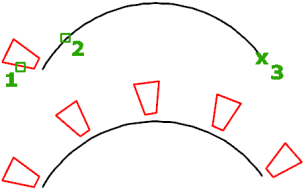 Gibt für assoziative Anordnungen eine gültige Abhängigkeit (oder Leitpunkt) auf den Quellobjekten zum Ausrichten am Pfad an. Wenn Sie die Quellobjekte oder den Pfad der resultierenden Anordnung bearbeiten, bleibt der Basispunkt der Anordnung koinzident mit dem Leitpunkt der Quellobjekte.
