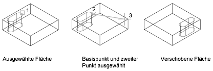 Verschiebt die ausgewählte Fläche auf einem 3D-Volumenkörperobjekt auf eine bestimmte Höhe oder einen bestimmten Abstand. Sie können mehrere Flächen gleichzeitig wählen.