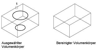 Aus einer Vereinigungs- oder Subtraktions-Operation kann ein einzelner 3D-Volumenkörper entstehen, der aus mehr als einem zusammenhängenden Volumen besteht. Sie können solche Volumina in unabhängige 3D-Volumenkörper teilen.