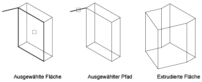 Bestimmt einen Pfad für den Extrusionspfad auf der Grundlage der angegebenen Linie oder Kurve. Alle Profile der ausgewählten Fläche werden entlang des gewählten Pfades extrudiert.