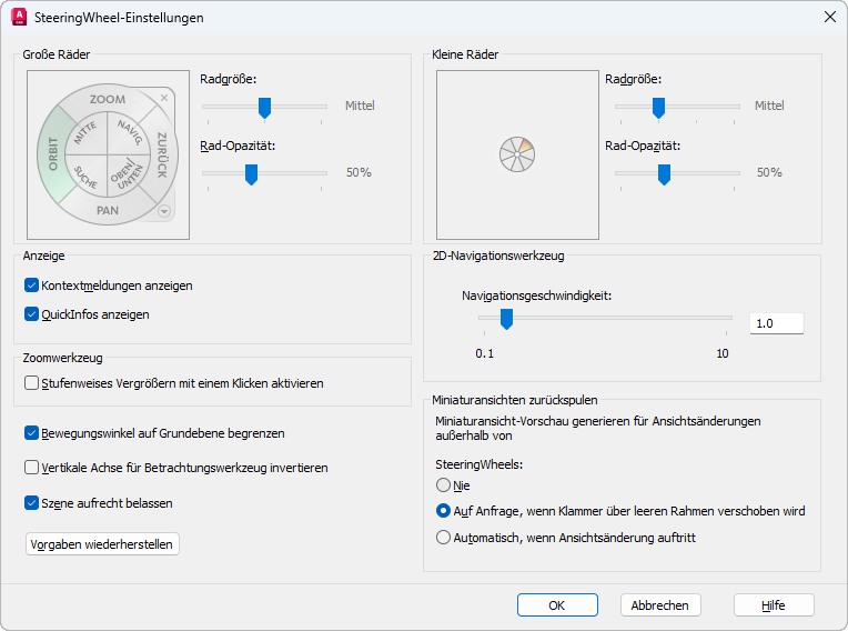 Optionen (Befehl), Finden: auf der Registerkarte 3D-Modellierung