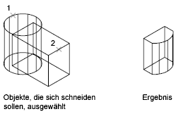Zusammengesetzte Volumenkörper werden mithilfe der folgenden Befehle aus zwei oder mehr Volumenkörpern, Flächen oder Regionen erstellt: VEREINIG, DIFFERENZ und SCHNITTMENGE.