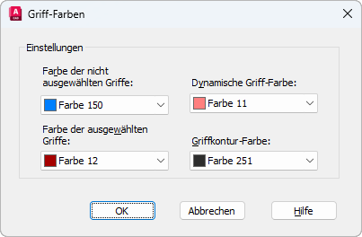 Steuert die Farbe der Griffkontur. (Systemvariable GRIPCONTOUR)