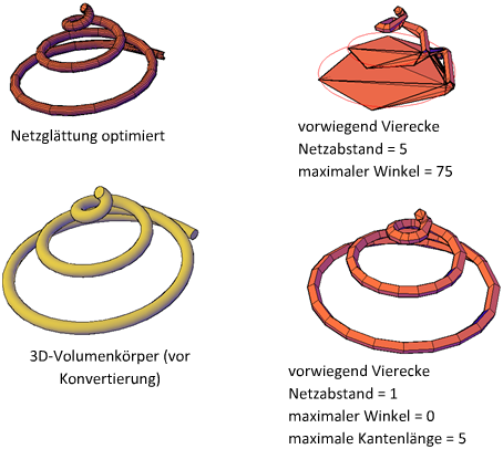 Die am besten voraussagbaren Ergebnisse erzielen Sie beim Konvertieren von 3D-Volumengrundkörperobjekten in Netzobjekte.