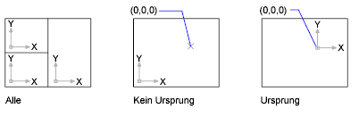 Zeigt das Symbol am Ursprung (0,0,0) des aktuellen BKS an. Wenn der Ursprung außerhalb des Sichtfelds liegt, wird er in der unteren linken Ecke des Ansichtsfensters angezeigt.