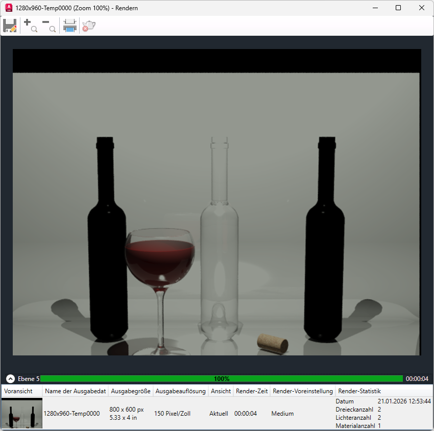 Die Renderausgabe aus einer Zeichnung wird immer im entsprechenden Renderfenster angezeigt.