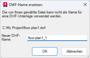Ermöglicht das Umbenennen einer DWF-Unterlage, wenn der Name nicht eindeutig ist.
