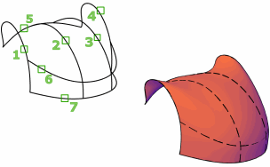 Erstellt eine Fläche im Raum zwischen mehreren Kurven in U- und V-Richtung (einschließlich der Flächen- und Volumenkörperkanten-Unterobjekte)