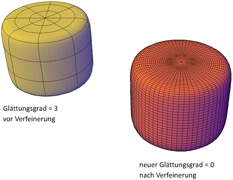 Sie können jedes Netz mit einem Glättungsgrad von 1 oder höher verfeinern.