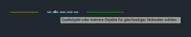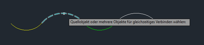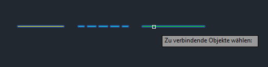 Es können mehrere Linien ausgewählt werden. Wenn sich die Objekte nicht am Ende berühren oder nicht kollinear sind, ignoriert VERBINDEN die Objekte.