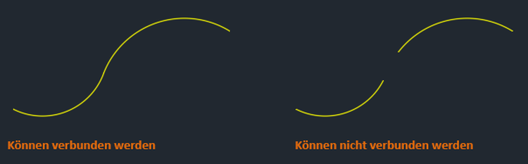 Objekte müssen kollinear sein oder sich an den Enden berühren. Mit Verbinden werden nur Objekte verlängert, die kollinear sind.