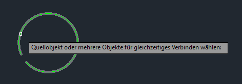 Es können mehrere Bogen ausgewählt werden, auch wenn sie sich nicht berühren. Voraussetzung dafür ist, dass sie denselben Mittelpunkt und Radius haben.