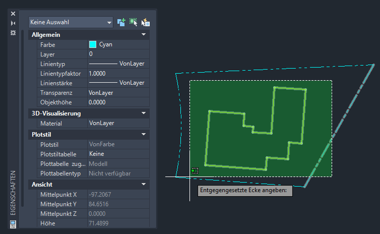 Versuchen wir es noch einmal. Diesmal wähle ich alle Linien in der Zeichnung mithilfe eines Kreuzen-Fensters aus.
