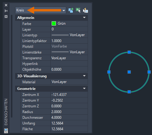 Sie können auch EIGENSCHAFTEN in die Befehlszeile eingeben.