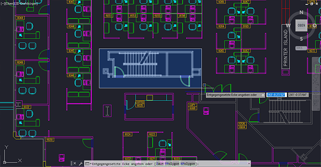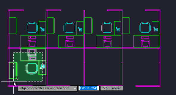 Die schnellste Möglichkeit zum Kopieren von AutoCAD-Objekten zwischen Layouts oder Zeichnungen besteht darin, die Objekte auszuwählen, die Sie aus einer Zeichnung kopieren möchten, und sie in eine andere Zeichnung einzufügen. Für diese Präsentation kopiere ich die Objekte aus diesem Büro in eine andere Zeichnung.