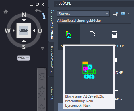 Die ausgewählten Objekte werden als Block in die Zeichnung eingefügt.