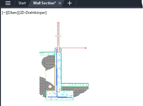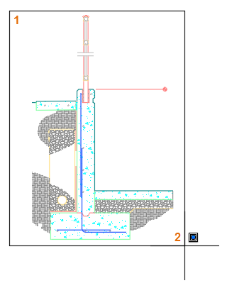 Hier sehen Sie ein Detail einer Stützmauer im Modellbereich. Sie haben die Geometrie vielleicht zusammen mit anderen Details auf einen Lageplan erstellt, oder Sie haben sie möglicherweise als Block eingefügt. In jedem Fall soll sie mit einer bestimmten Skalierung in einem Layout-Ansichtsfenster angezeigt werden. Für dieses Beispiel wird eine europäische Standardskalierung für Standarddetails verwendet. Wenn Sie den Vorgang anhand einer Ihrer eigenen Zeichnungen mitverfolgen wollen, wählen Sie ggf. die Skalierungen, die Sie normalerweise verwenden.