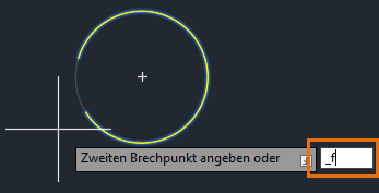 Wenn Sie zur Eingabe des zweiten Brechpunkts aufgefordert werden, geben Sie F ein, um die Option Erster Punkt zu verwenden und den ursprünglichen ersten Punkt zu überschreiben.