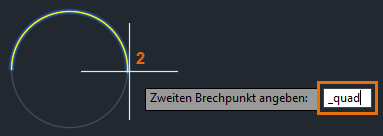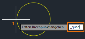 Verwenden Sie den Objektfang QUADrant erneut, und geben Sie den zweiten Brechpunkt an.