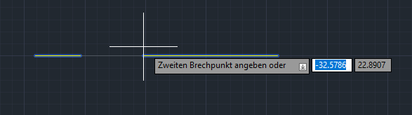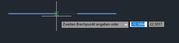 Das ist großartig. Sie haben eine einzelne Linie zwischen den beiden angegebenen Punkten in zwei Segmente mit einer Lücke gebrochen. Diese Segmente sind zwei separate Linien, die jeweils unterschiedliche Farben, Linientypen oder Layer aufweisen können.