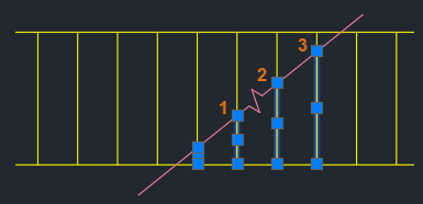 Anmerkung: In den vorherigen Beispielen waren die Linien planar zum Benutzerkoordinatensystem (BKS). Das präzise Brechen von Linien in einem Winkel kann eine Drehung des BKS erfordern. Weitere Informationen zum Drehen des BKS finden Sie unter Haben Sie dies schon versucht: Verwenden des BKS für 2D-Zeichnen.