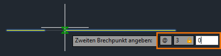 @ weist den Befehl BRUCH an, den zuvor angegebenen Punkt als zweiten Punkt zu verwenden. In diesem Fall wird der Mittelpunkt der Linie für den ersten und zweiten Punkt verwendet, sodass zwei gleiche Segmente ohne Lücke dazwischen entstehen.
