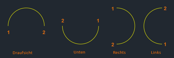 Die Reihenfolge, in der Sie Punkte um den Kreis angeben, bestimmt die Richtung des Bruchs: im Uhrzeigersinn und gegen den Uhrzeigersinn.