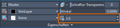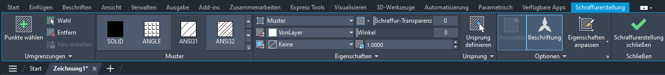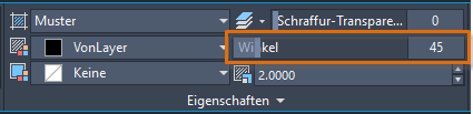 Beim Anwenden oder Bearbeiten einer Schraffur möchten Sie vielleicht Eigenschaften wie Winkel, Maßstab, Ursprung usw. zuweisen.