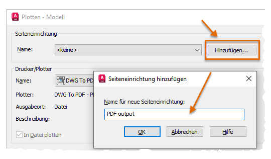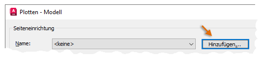 Beim Hinzufügen einer Seiteneinrichtung im Dialogfeld Plotten speichern Sie einen Schnappschuss all Ihrer Ploteinstellungen und weisen einen Namen zu.