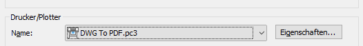 Wählen Sie im Dialogfeld Plotten die zu speichernden Einstellungen. Um den Namen des Druckers/Plotters zu erhalten, rollen Sie beispielsweise durch die Dropdown-Liste und klicken auf DWG to PDF.pc3.