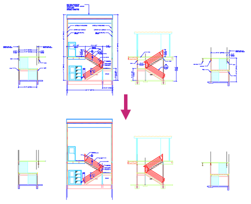 Effizientes Design kann etwas Zeit und Planung erfordern. Wenn die von Ihnen bearbeiteten Zeichnungen immer größer und komplexer werden, müssen Sie wahrscheinlich mehr Schnitt- und Ansichtsdarstellungen sowie Verbindungs- und Fundamentdetails zeichnen. Diese Konstruktionselemente verwenden häufig wiederverwendbaren Inhalt und erfordern möglicherweise, dass er je nach Zeichnung in verschiedenen Maßstäben angezeigt wird.