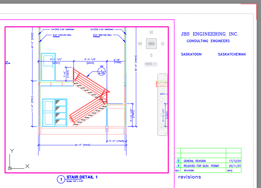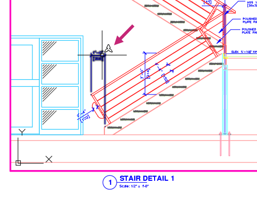 Das neue MText-Objekt mit der Bezeichnung STAIR DETAIL 1 sollte im Ansichtsfenster angezeigt werden, da ihm der Maßstab 1/2"=1'-0" zugewiesen wurde. Der Text wird nicht im Ansichtsfenster STAIR SECTION 1 angezeigt, da ihm der Maßstab 1/4"=1'-0" zugewiesen ist.