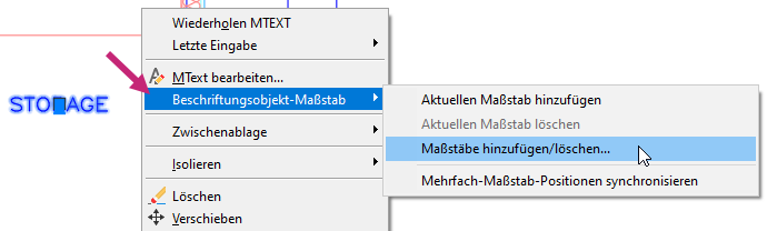 Die folgenden Schritte erläutern, wie Sie dem in der vorherigen Übung erstellten Beschriftungs-MText-Objekt Beschriftungsmaßstäbe hinzufügen: