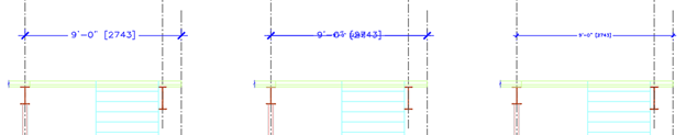 Bei mehreren definierten Layern können Sie dann die Sichtbarkeit der Layer steuern, um die Bemaßungen anzuzeigen, die dem Maßstab des Ansichtsfensters entsprechen. Wenn das Ansichtsfenster beispielsweise einen Maßstab von 1/2"=1'-0" (1/24) hat, tauen Sie den Layer A-DETL-DIMS-24 und frieren den Layer A-DETL-DIMS-48.