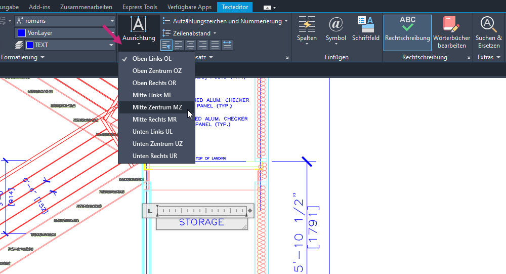 Die folgenden Schritte erläutern, wie Sie mehrzeiligen Beschriftungstext (MText) erstellen: