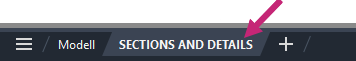 In der zuvor verwendeten Beispielzeichnung waren bereits Beschriftungsmaßstäbe für jedes Ansichtsfenster im Layout SECTIONS AND DETAILS festgelegt, die dem Maßstab der einzelnen Ansichtsfenster entsprechen. Wenn Sie ein neues Ansichtsfenster erstellen und dessen Maßstab festlegen, wird der Beschriftungsmaßstab automatisch an den Maßstab des Ansichtsfensters angepasst. Wenn die beiden Maßstäbe nicht übereinstimmen, können Sie auf die Schaltfläche Maßstab für Ansichtsfenster synchronisieren () klicken, um den Beschriftungsmaßstab an den Maßstab des Ansichtsfensters anzupassen. Die Schaltfläche Maßstab für Ansichtsfenster synchronisieren ist blau, wenn die beiden Maßstäbe übereinstimmen. Weitere Informationen zum Erstellen und Skalieren von Ansichtsfenstern finden Sie unter Haben Sie dies schon versucht: Vorskalierte Layout-Ansichtsfenster.