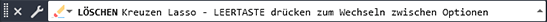 Beachten Sie, dass in der Befehlszeile angezeigt wird, dass Sie derzeit ein Kreuzen-Lasso verwenden, d. h. alle Elemente, die das Lasso kreuzt und einschließt, werden ausgewählt.