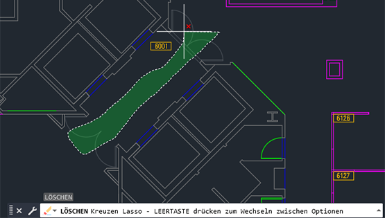 Anmerkung: Sie können einen zuvor gelöschten Auswahlsatz wiederverwenden. Wenn Sie aufgefordert werden, Objekte auszuwählen, geben Sie v (Vorherige) ein, oder drücken Sie STRG+UMSCHALT+L, um den vorherigen Auswahlsatz zu verwenden.