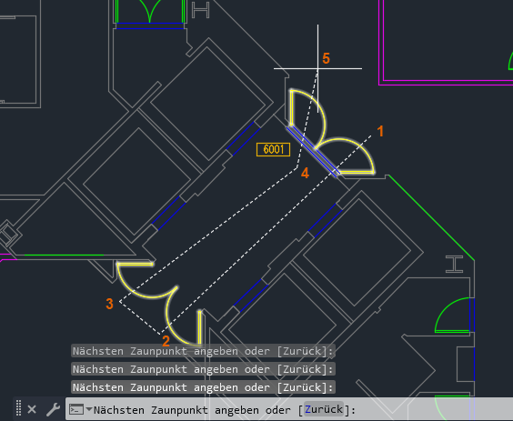 3. Geben Sie Punkte an, um einen Zaun zu definieren, der durch die Türen verläuft.
