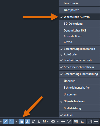 Die wechselnde Auswahl kann mithilfe der Statusleiste aktiviert und deaktiviert werden. Finden