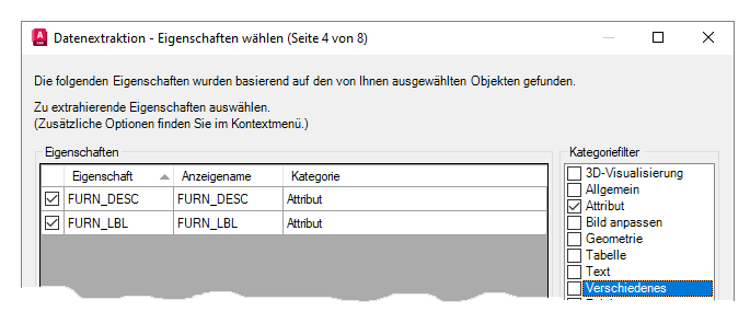 - Deaktivieren Sie unter Kategorie filtern alle Optionen außer Attribut und stellen Sie sicher, dass die aktivierten Eigenschaften mit den zu extrahierenden Attributwerten übereinstimmen.