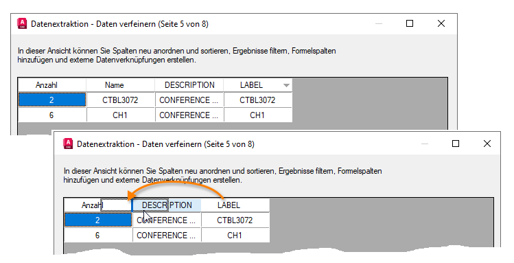 Anmerkung: Beim Erstellen einer neuen Datenextraktionsdatei hat die Datei in AutoCAD 2024 und früher die Erweiterung .dxe und ab AutoCAD 2025 die Erweiterung .dxex.