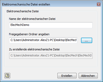 Geben Sie einen Ordner an, der von AutoCAD Electrical toolset und Inventor gemeinsam verwendet wird.