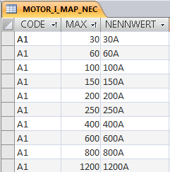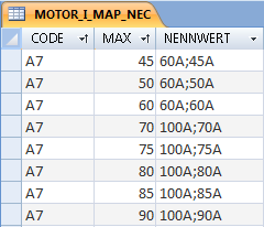 Die Tabelle MOTOR_I_MAP enthält entsprechende durch ein Semikolon getrennte Werte in der Spalte NENNWERT.