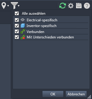 Filtern Sie Betriebsmittel in der Betriebsmittel-Strukturansicht nach dem Verknüpfungsstatus.