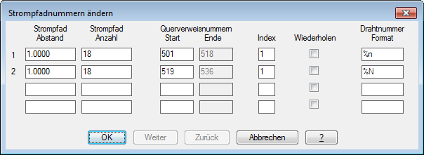 Im Dialogfeld Strompfadnummern ändern wird eine Liste der in der Zeichnung vorhandenen Stromlaufpläne angezeigt.