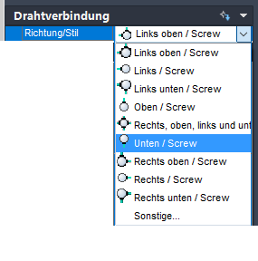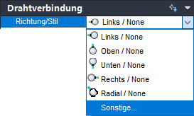 Erweitern Sie die Liste Richtung/Stil, und wählen Sie Sonstige, um das Dialogfeld Drahtverbindungen einfügen zu öffnen.