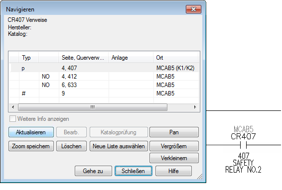 Wechseln zwischen zugehörigen Betriebsmitteln mit dem Navigator