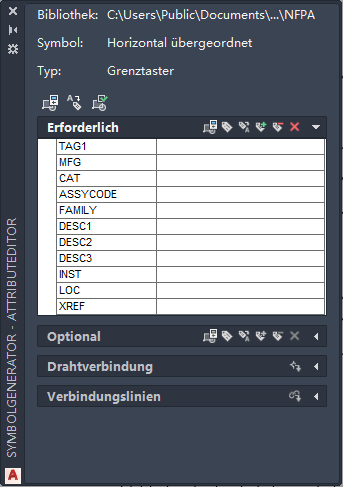 Beachten Sie im Symbolgenerator - Attributeditor das Häkchen neben dem Attribut BMK1. Platzieren Sie jetzt die übrigen Attribute.
